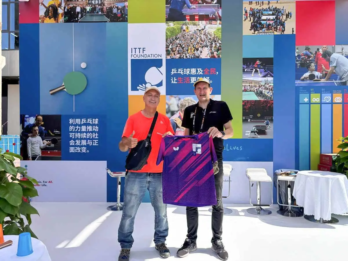 Providing T-shirts for the ITTF Foundation booth at the World Table Tennis Championships 2025