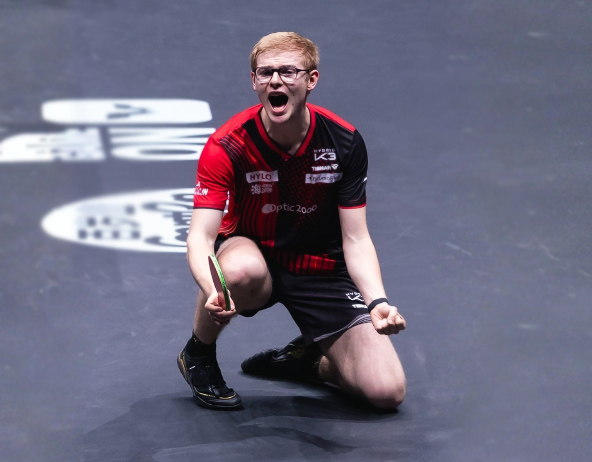 The other Semifinal featured a pair of teenagers with Sora Matsushima jumping out to a 3-1 lead over Felix Lebrun before losing three straight.  Lebrun’s 4-3 comeback launched him into the Final where he would face off against Ruibo.  Comparing the unlikely runs of the two players is an interesting exercise.  For Lebrun, he dominated two potentially tough opponents – 3-0 wins against both Quadri Aruna and An Jaehyun.  Lebrun then upset Hugo Calderano – a comeback win the necessitated 3 straight wins to close out the match.  Lebrun would have then had to face World No. 1 Wang Chuqin, except that Matsushima upset Chuqin a round earlier.  Still, Matsushima was on an amazing run, and Lebrun again found himself down 1-3 and again executed three straight wins to come from behind and advance 4-3.  Ruibo’s run was event more unexpected – a win over another young star (3-0 win over Flavien Coton).  Ruibo then upset Truls Moregard 3-1, then Dang Qiu 4-2, and then Harimoto 4-2.