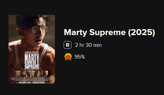 In its opening day, “Marty Supreme” brought in $875,000 with a limited release. It has now opened worldwide and has already brought in $17 million dollars. On Christmas Day, a ping pong movie topped its competition (including “Anaconda” and “Avatar Fire & Sun”). Timothy Chalamet trained extensively in preparation for the role, and so far his character is being well received… as is the movie. RottenTomatoes.com has given the movie a 95% score, showing that a vast majority of the audience have a positive view of the movie.