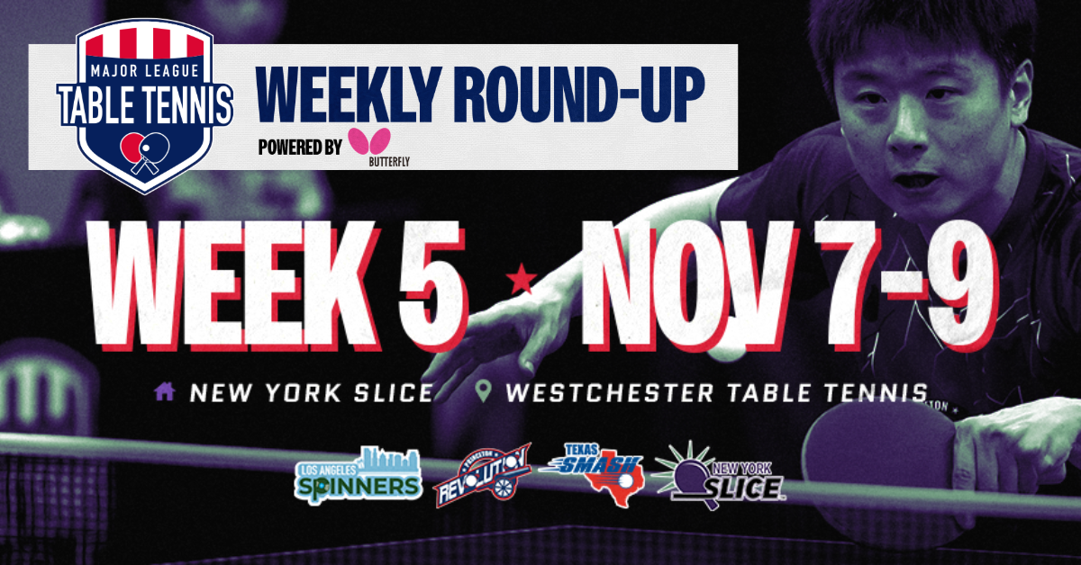 We kick off in Pleasantville, NY, starting Nov 7–9 at the Westchester Table Tennis Center. The home team New York Slice defend their court against top-tier opponents, including the Princeton Revolution, Los Angeles Spinners, and Texas Smash!