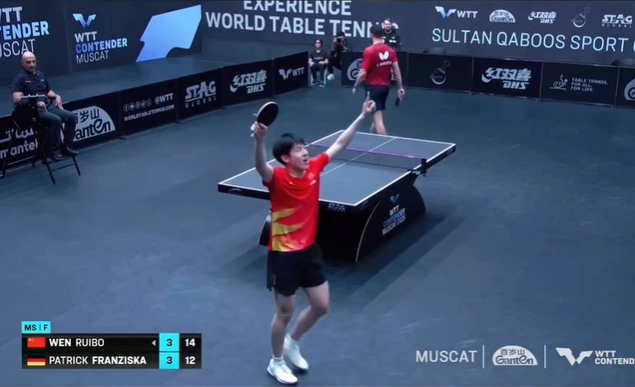 For Ruibo, he was 12-1 on his way to the Final – including two wins over top European players. Ruibo seemed to be on a roll, winning the first three games against Patrick Franziska in the Final. But, down 0-3, Franziska found a new gear and ran off three wins of his own. And from this 3-3 position, the two played an epic final game with Ruibo finally winning 14-12.