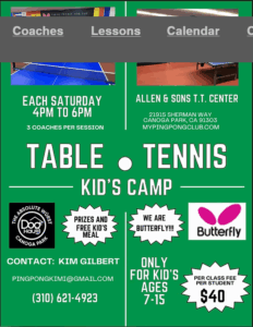 Allen & Sons Table Tennis Club – Kids Camp – Saturdays