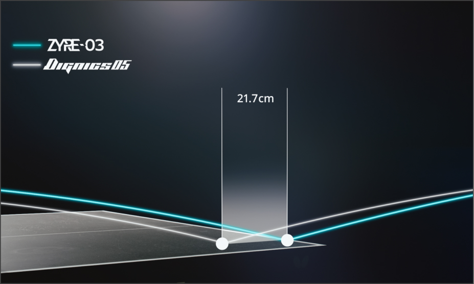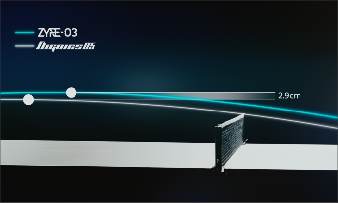In the past, equipment was evaluated under a single set of conditions. Today, diverse playing scenarios can be simulated and analyzed, allowing the results to align more closely with players’ actual experience. Interviews with Butterfly players revealed the key preference; “the ball doesn’t drop easily in counter attacks.” Zyre 03 was designed in response to these needs, with enhanced grip performance during counter attacks.